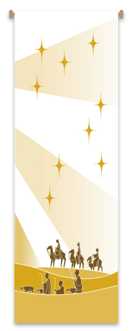 The banner creates a warm atmosphere, inspiring peace, quiet and prayer.