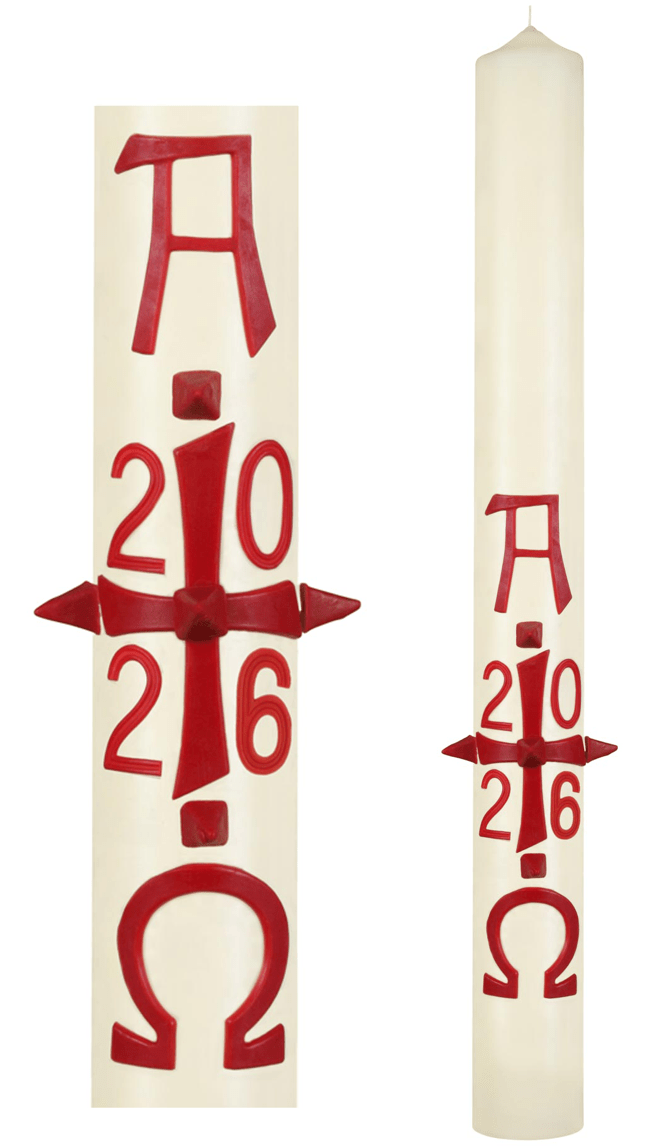 Each candle is made exclusively from selected raw materials, and contains at least 10% beeswax component. They are made from very high-density materials for a long-lasting and even burn, and so are especially economical in burning. A solid, protective and shiny coat surrounds each candle. They are produced strictly according to the liturgical requirements.